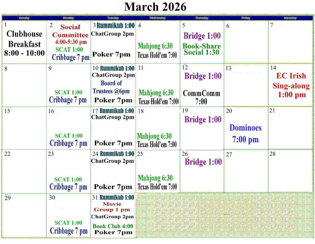 Friday, March 20th @ 7:00 pm in the Clubhouse